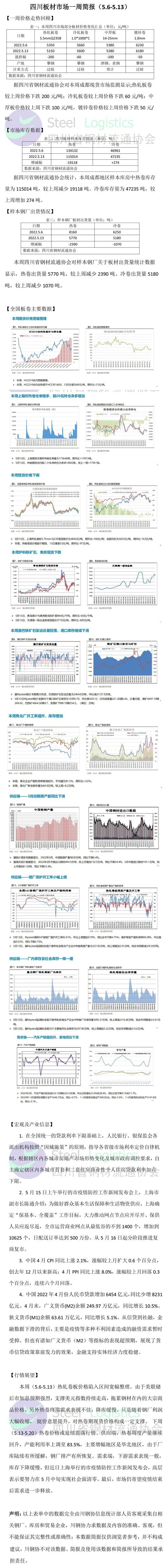 本周(5.6-5.13)热轧卷板价格陷入区间宽幅整理。由于美联储后市加息预期强烈,支撑美元指数持续走高,拖累钢材在内的大宗商品价格。另外热卷终端需求表现不佳,降库缓慢。只是随着钢厂利润大幅收缩, 挺价意愿提升,对热卷期现货价格构成一定支撑。下周(5.13-5.20)热卷价格或延续震荡行情。供应端,热卷周度产量继续回升,产能利用率上调至83.5%,主要增幅地区是华北地区,由于厂库陆续有所缓解,钢厂排产有所恢复。需求端,下游需求表现一般, 库存下降缓慢,但近日上海举行的市疫情防控工作新闻发布会,高层表示要努力在5月中旬实现社会面清零。最后,市场仍寄望疫情结束后需求进一步释放......☟