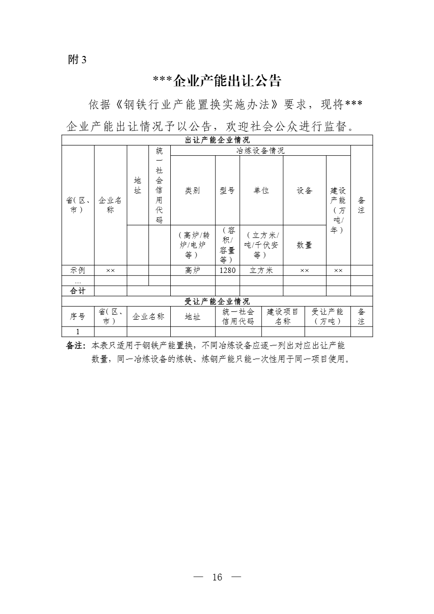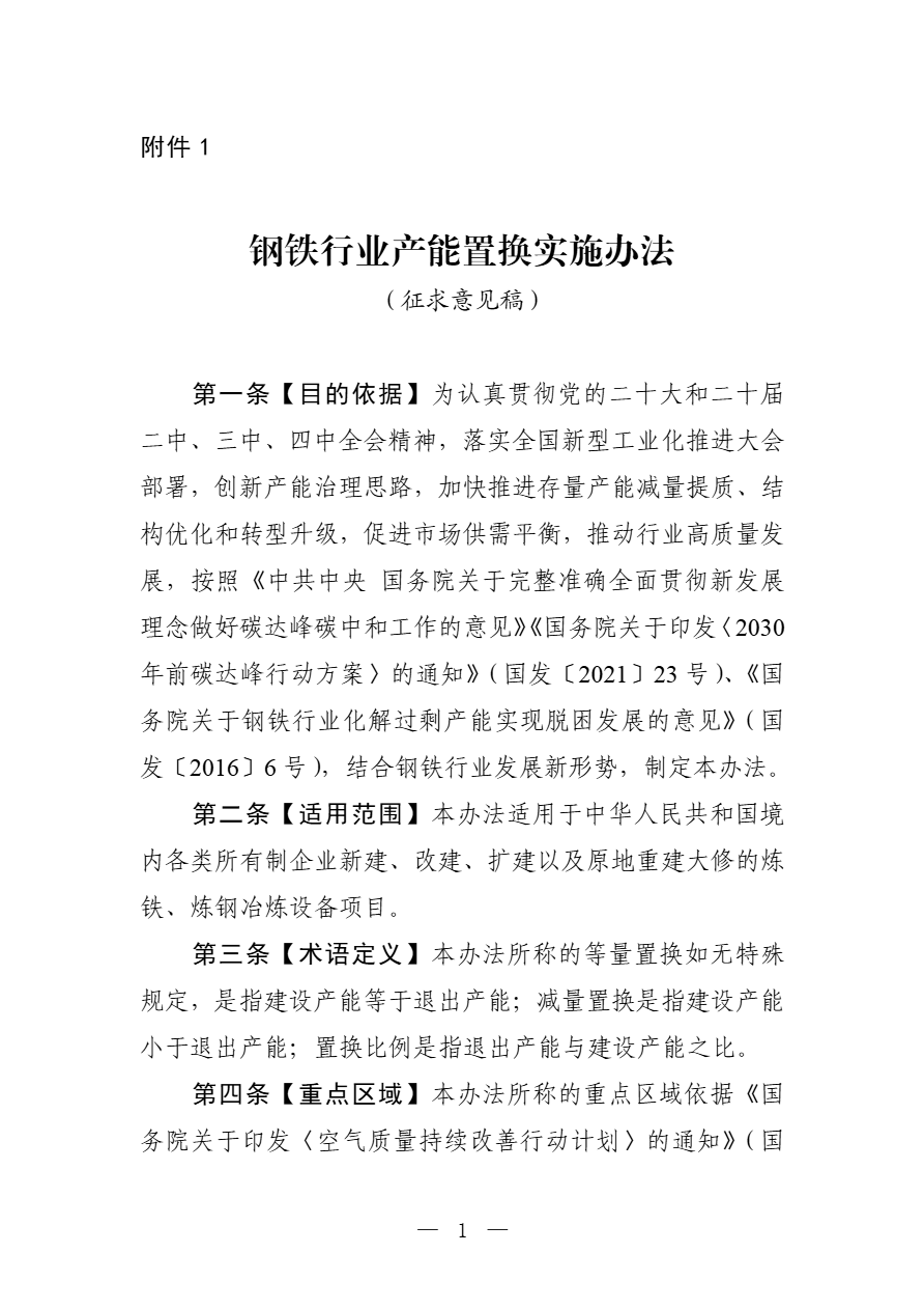 附件:1.钢铁行业产能置换实施办法(征求意见稿)